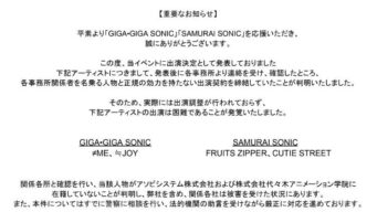 嫌儲 【詐欺事件】FRUITS ZIPPERら4組、イベント出演が困難に 主催者が”各事務所関係者を名乗る人物”と出演契約、詳細説明&謝罪