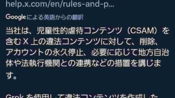 嫌儲 X.com、ガチでキレる「grokで児童ポルノ生成してるクズを許さない。すべからく法執行機関に通報する」