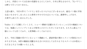 嫌儲 VTuber猫元パト「ショートで質問に答える形式は俺のパクリ」と主張、名指しされた新人が謝罪する事態に……