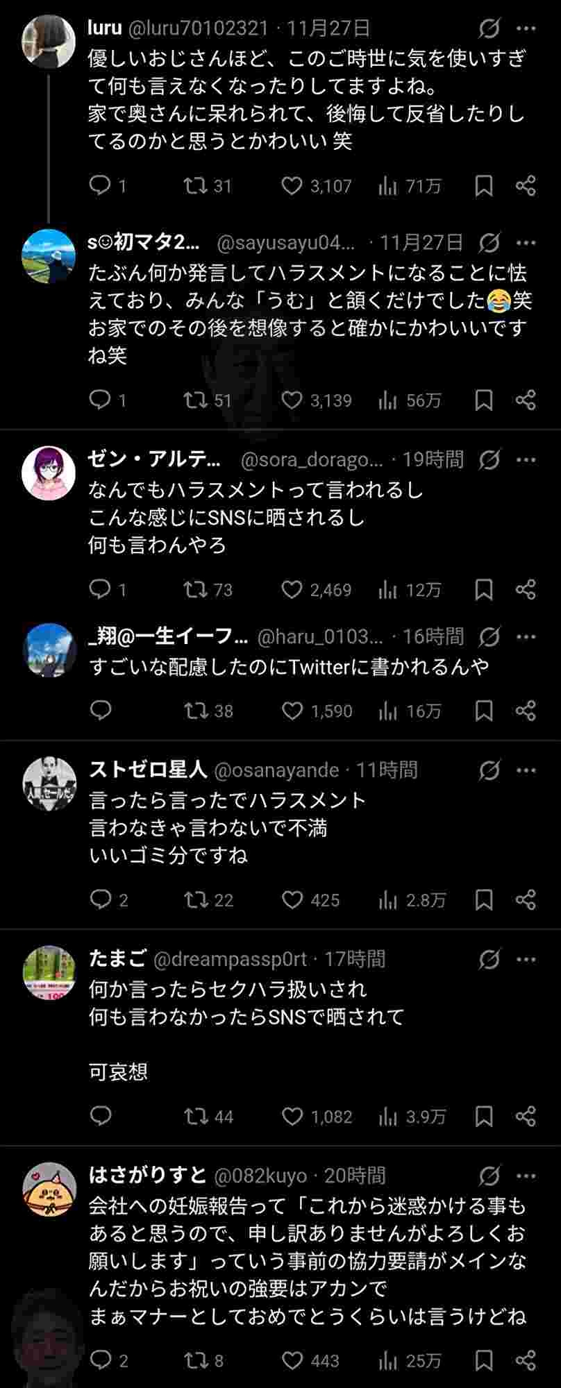 (ヽ´ん`) なんか言ったらすぐセクハラとか言われるし…