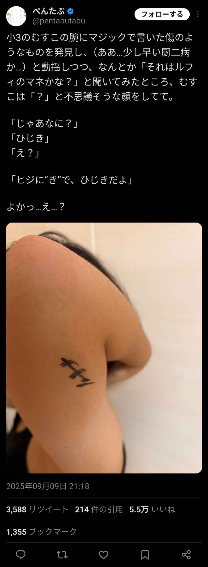 書いてある場所がひじじゃないからいじめられてないか心配になる