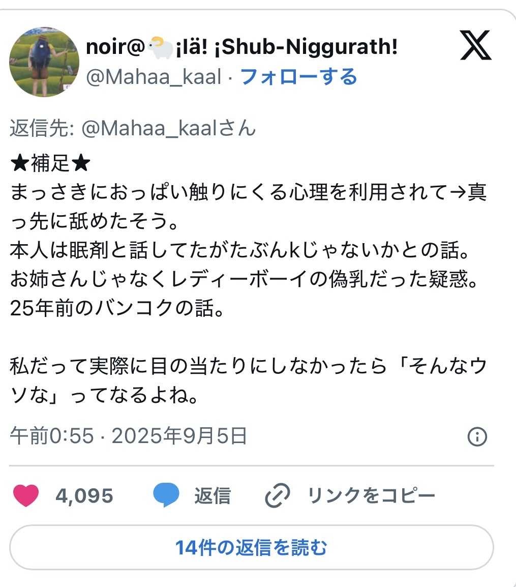タイの昏睡強盗は白人がやってるって話は有名だけど乳に塗るんか?